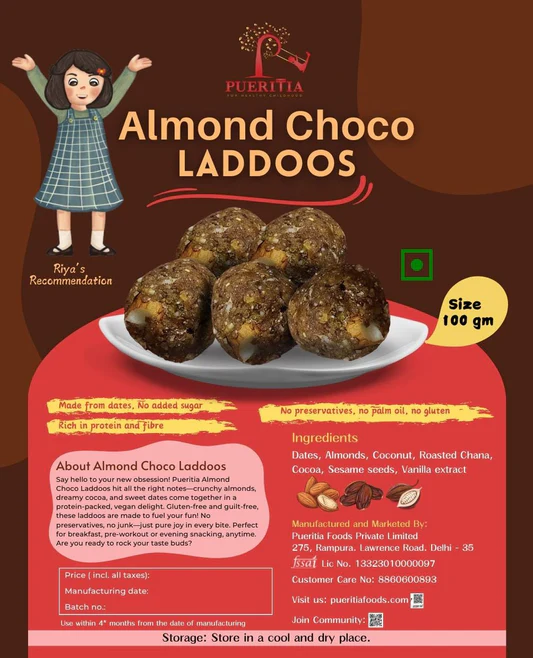 Say hello to your new obsession! Pueritia Almond Choco Laddoos hit all the right notes—crunchy almonds, dreamy cocoa, and sweet dates come together in a protein-packed, vegan delight.